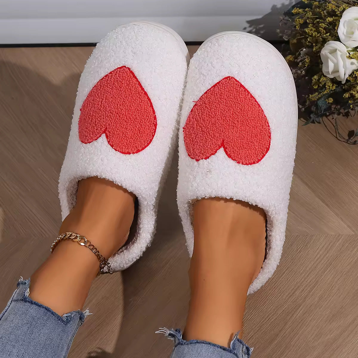 Heart Slippers With Rubber Sole