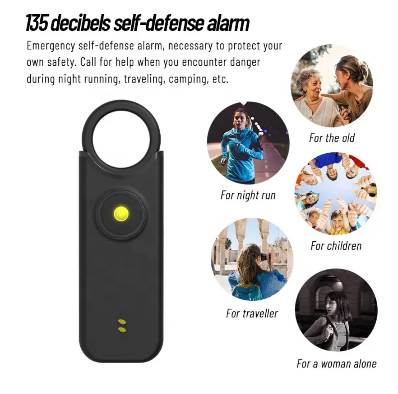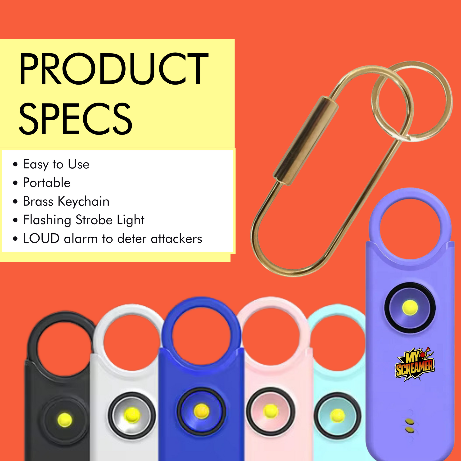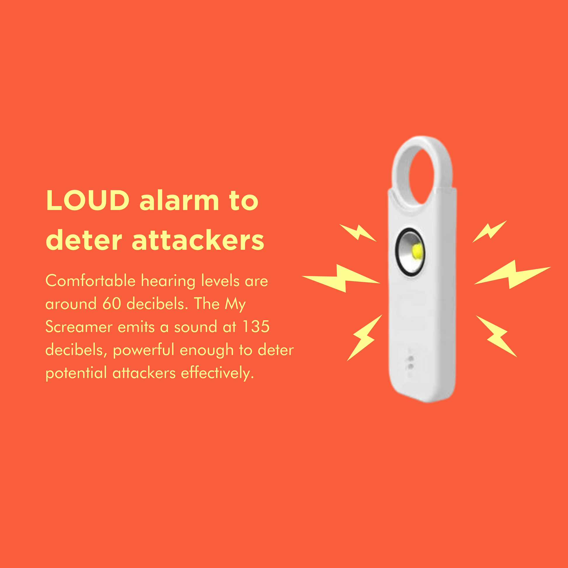 - Sound: Loud 130 dB Alarm – Alerts Those Nearby and Deters Threats